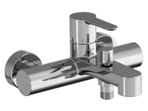 Elegant falra szerelhető fürdőkád csaptelep RAVAK Puri sorozatból. Króm kivitelben, FlexiFlow perlátor funkcióval és kényelmes zuhanykészlet-vezérlővel.
