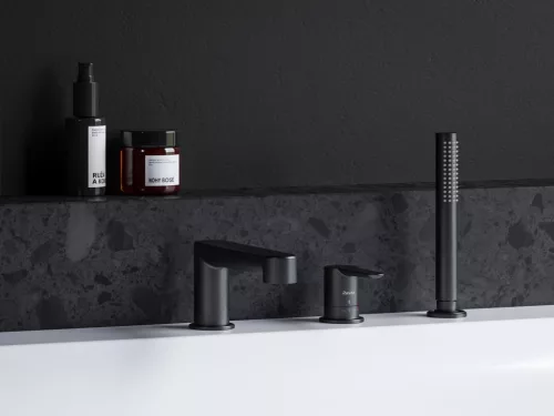 Elegáns, matt fekete kádperem csaptelep forgó váltóval és zuhanykészlettel. A RAVAK Puri sorozat időtlen designja tökéletes választás modern fürdőszobákba. Professzionális minőség és megbízható teljesítmény garantálva.