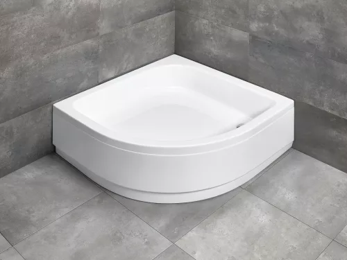 Elegáns és praktikus 90x90 cm-es íves zuhanytálca fehér színben. A szett tartalmazza az ajándék ST 50-es sziront és minden szükséges szerelési alkatrészt a könnyű telepítéshez.