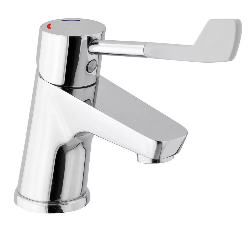 Sapho HOSPITAL sorozat mosdócsaptelep, speciálisan idősek és fogyatékkal élők számára tervezett. Lefolyó nélküli kivitelben, korszerű króm felülettel.