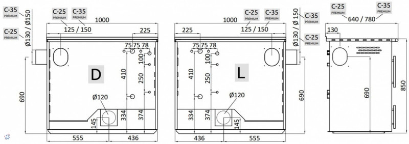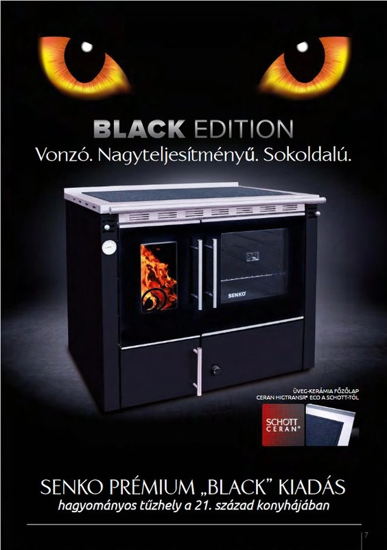 Senko C-35 Premium (35 kW) tűzhely központi fűtéshez sütővel, fekete (Sparhelt) Jobb/Bal