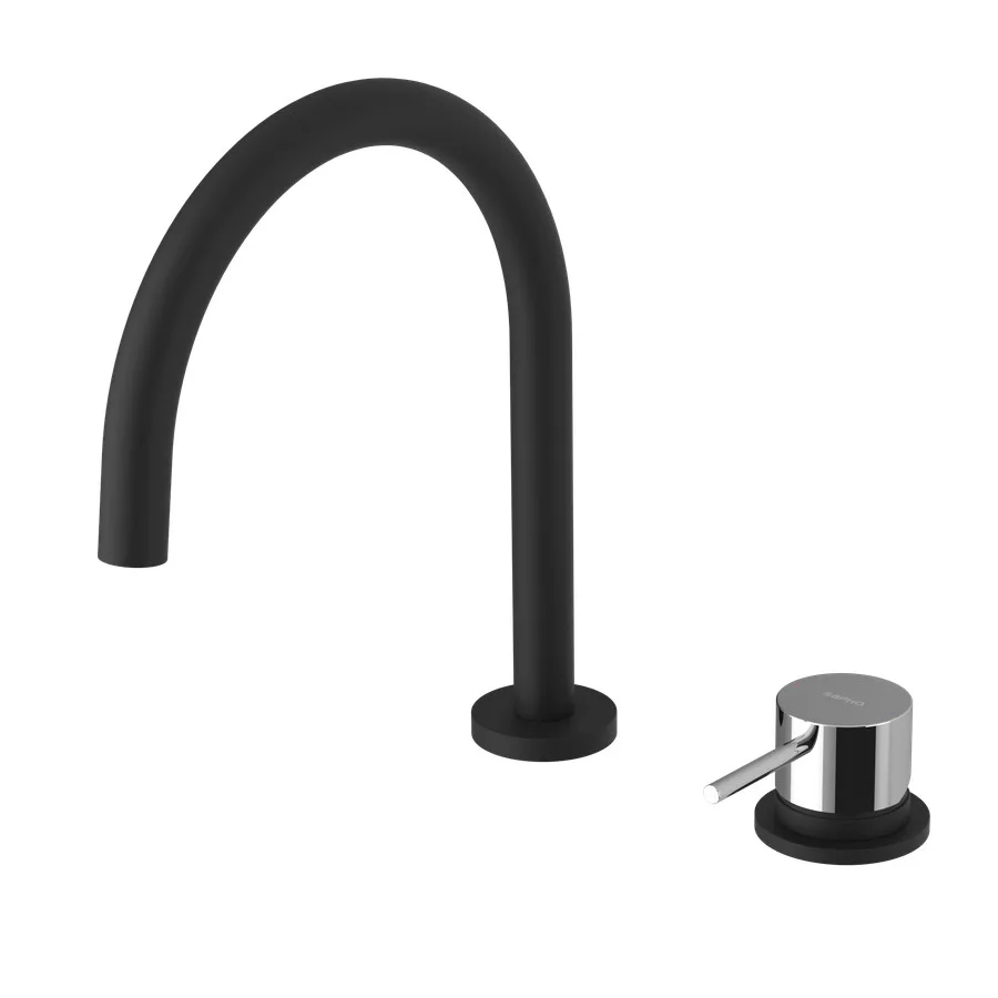 Az ULTRAMIX álló mosogatócsaptelep a Sapho márkától egy kifejezetten összetartó, stílusos konyhai megoldás. Matt fekete és króm kombinációja modern, minimalist dizájn irányokat követő otthonokhoz ideális, amely egyúttal időtálló esztétikát biztosít.