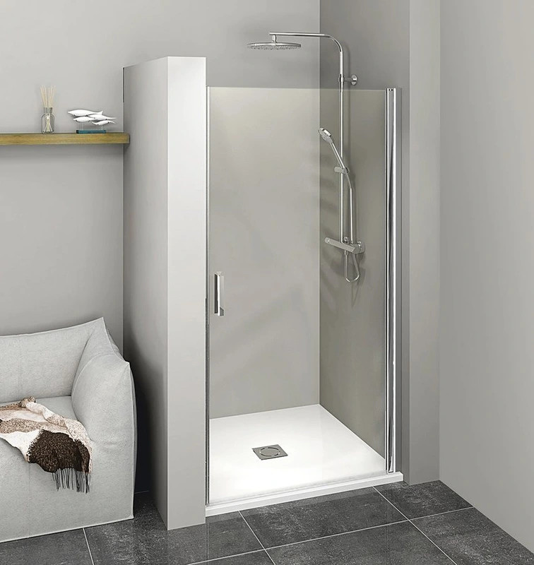 Elegáns nyíló zuhanyajtó 800mm szélességgel, prémium króm profilokkal és antidrop üvegbevonattal. Keret nélküli kialakítása modern fürdőszobákat díszít, könnyű szerelhetőséggel és univerzális nyitási lehetőséggel.