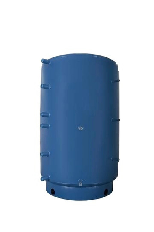 Professzionális 1500 literes puffertároló két beépített hőcserélővel, szigetelés nélküli kivitelben. Ideális megoldás nagyobb fűtési rendszerek hatékonyságának növelésére és HMV előállításra.